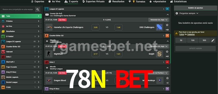 O 78N Bet oferece uma grande seleção de opções de apostas em e-sports com probabilidades competitivas